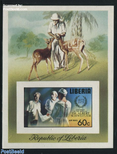 Another commemorative stamp sheet for what would have been Albert Schweitzer’s 100th year, this time from Liberia.