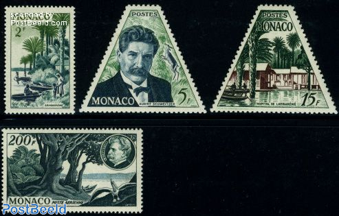 With the aim of becoming a medical missionary in Africa, in 1905 he returned to university until 1911 to study medicine. In 1913, with his wife, Hélène Bresslau, who had trained as a nurse and anaesthetist in order to assist him, he set out for Lambaréné in the Gabon province of French Equatorial Africa with the intention of setting up a hospital. The 1955 stamps from Monaco above show their landing site in Lambaréné, a birthday portrait with flora and fauna, the first hospital buildings and Gabonese flora and fauna.