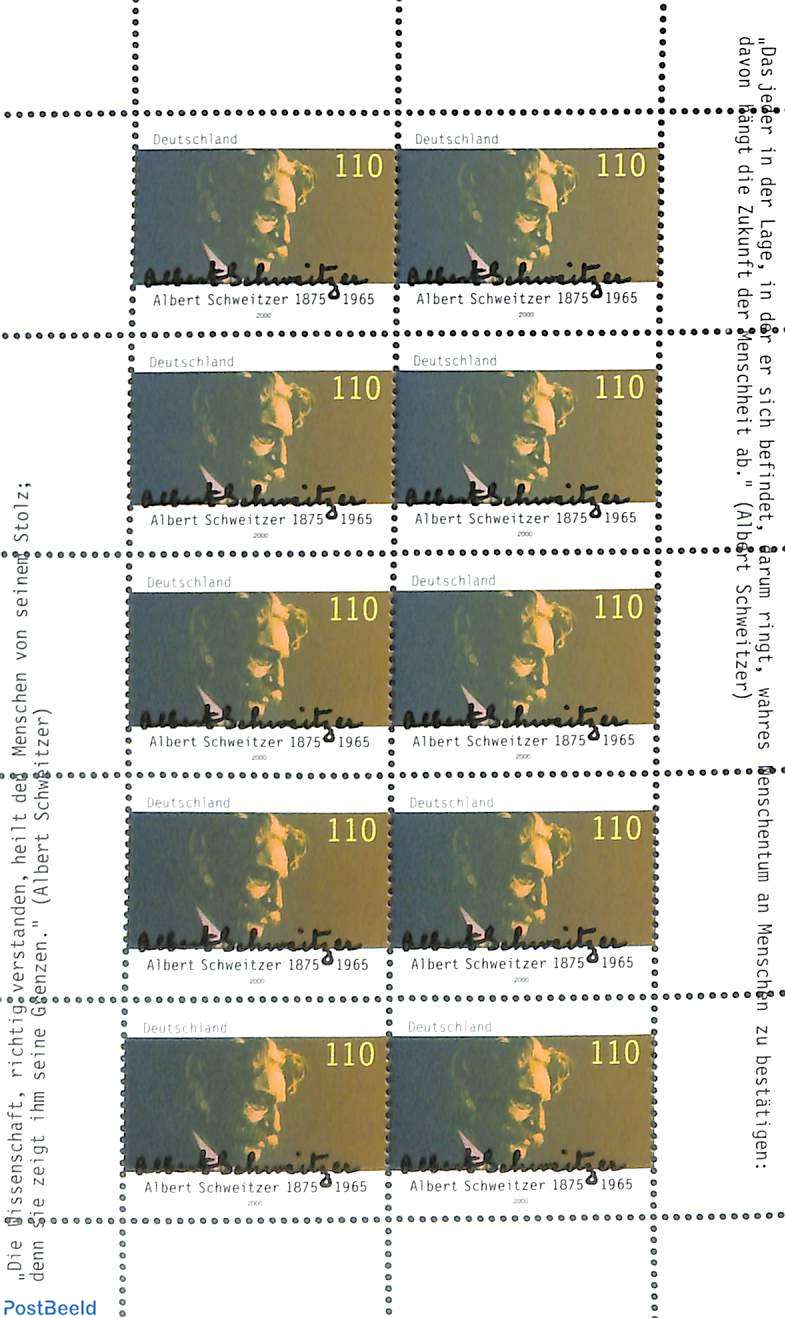 In the Millennium year Germany produced the stamp sheet here to commemorate his 125th birth anniversary. The stamps had with Schweitzer’s signature and also two of his quotes in the margins.