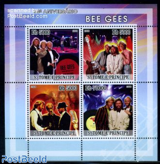 The small West African island nation São Tomé and Príncipe produced the above Bee Gees stamp sheet in 2008 as part of their “Music Stars” issue.