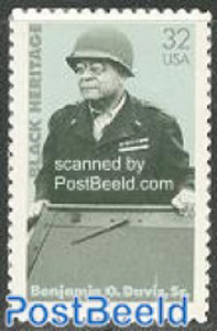 On the 1997 Black Heritage stamp Benjamin O. Davis Sr. (1877-1970) was featured. Brigadier General Benjamin Oliver Davis Sr. began his military career as a volunteer during the Spanish-American War. He then enlisted in the U.S. Army and quickly moved up through the ranks, becoming the first African-American general in U.S. history. Davis was appointed to the Committee on Negro Troop Policies where he worked on changing the military’s policies on segregation. During his army career he received the Bronze Star medal and the Distinguished Service Medal (DSM).