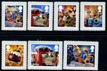 In 2010 Great Britain issued the 7-value Christmas set below featuring Wallace & Gromit.