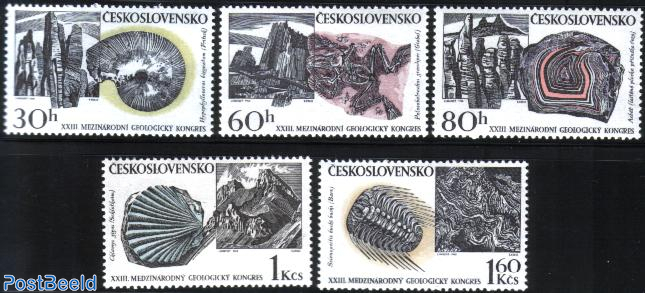 The 23rd International Geological Congress to be held in Prague, Czechoslovakia, in 1968 was the largest since the first IGC was held in 1878 in Paris. Unfortunately it was cancelled by the organisers on 23rd August 1968, two days after Warsaw Pact forces invaded the country. The stamps issued to commemorate the Congress feature fossils found in Czechoslovakia. The stamps depict: 30h – Hypophylloceras bizonatum; 60h – Palaeobatrachus grandipes; 80h – A cross-section of a mineral; 1Kcs – Chlamys gigas; and the 1.60 Kcs – Selenopeltis buchi buchi.