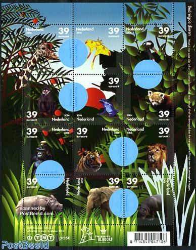 In 2006 The Netherlands issued a miniature sheet with a set of stamps featuring animals from Blijdorp Zoo, Rotterdam. Each stamp has a hidden image which can be viewed using the special decoder lens which was issued with a Zoo Animals stamp booklet.