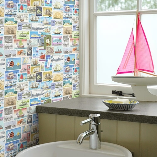 After carefully removing the stamps the new owner was able to sell the stamps for a large sum of money, enough for him to quickly sell the house and buy a much larger property. If you want to have a room decorated with stamps today, you can even buy stamp wallpaper. There are many manufacturers with many attractive designs. The examples below are from Fayen and purlfrost.