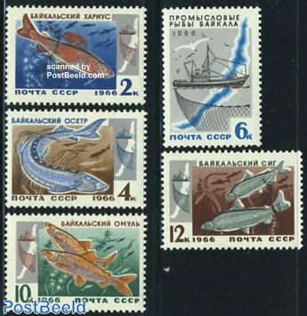 The lake was declared a UNESCO World Heritage Site in 1996. The stamp set above, also issued in 1966 featured fish to be found in the lake and a fishing vessel. In order of value the fish shown are Grayling, Sturgeon, Pink Salmon and Baikal Whitefish.