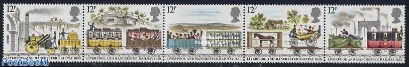 The railway has played an incredibly important part in the lives of billions of people over the years. The first public railway which used only steam locomotives all the time, the Liverpool and Manchester Railway, designed and built by George Stephenson, was opened in 1830 in the United Kingdom. Great Britain produced a lovely portrayal of the railway over a set of five stamps to commemorate the 150th anniversary of the first journey on that line.