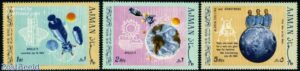 Above, from 1969, three stamps from Ajman – one of the seven Emirates of the United Arab Emirates.