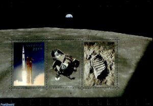 Niue, an associated state of New Zealand in the South Pacific Ocean is one of the world’s largest coral islands. The above stamp sheet was issued to celebrate the 20th anniversary of the first manned Moon landing.