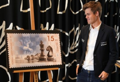 Naturally his country of birth, Norway, has commemorated Carlsen’s achievements with a postage stamp, issued in August 2014 to mark the Norwegian Chess Association’s centenary.