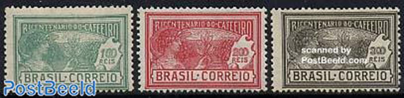 Above Brazilian stamps issued in 1928 to celebrate 200 years of coffee in that country.