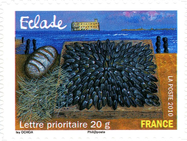 The stamp above is one from a booklet set of 12 self adhesive stamps on the subject of regional food specialities issued by France in 2010.