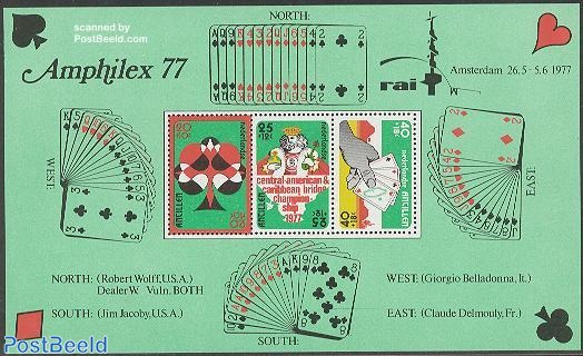 On the Netherlands Antilles 1977 stamp sheet shown above are teams’ individual hands of cards, the WEST hand that of one of the greatest-ever Bridge players, the Italian Giorgio Belladonna.