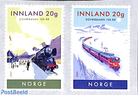Stamps were issued by Norway in 2021 to celebrate 100 years of the Dovre-Banen railway (now the Dovre Line) which links Oslo to the northern historic city of Trondheim. Seen here is the cover of a prestige booklet and below two of the stamps from the booklet.