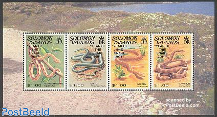 From the Solomon Islands in 2001 a beautiful stamp sheet, if snakes are your thing, to celebrate the Chinese New Year 2001 – the Year of the Snake. From left to right we have a Red-banded tree snake, a whip snake, a Pacific boa and a Guppy’s snake.