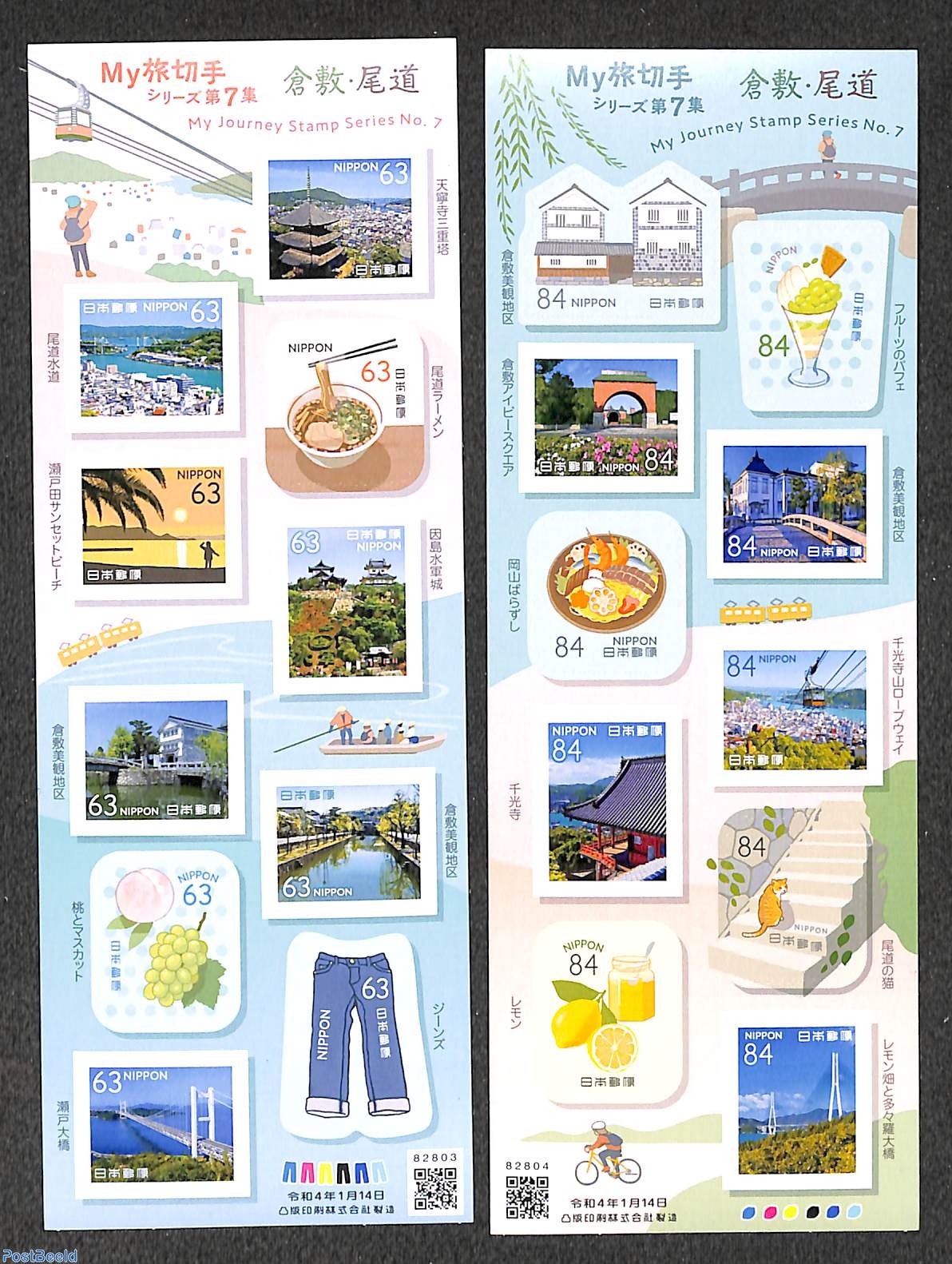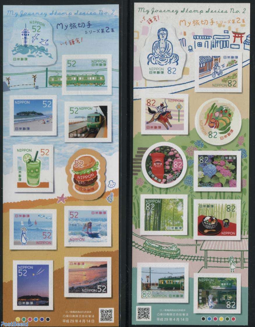 The first stamp sheets in the series “My Journey” were issued by Japan Post in 2016. Here we have the two 10-stamp sheets from 2017. And below 2022’s production.