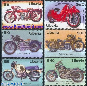 Issued by Liberia in 2001 is this set of classic motorcycles. One big mistake here is the $30 value Rolls-Royce 1938. The motorcycle featured on the stamp is in fact a Brough Superior which was once called “the Rolls-Royce of Motorcycles”.