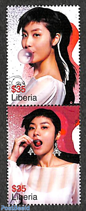 Two more 2001 stamps from Liberia show Kelly Chen, a Hong Kong Chinese “Cantopop” singer and actress. She has been referred to as the “Diva of Asia”.