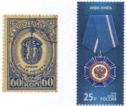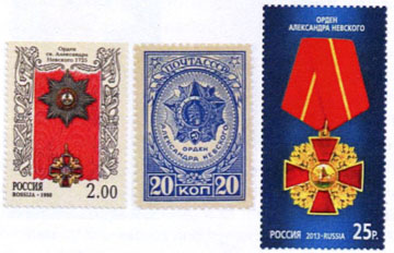 The Soviet Union/Russian Federation has a long tradition of issuing postal stamps depicting decorations. The very first one came out in 1933 with the Order of the Red Banner.