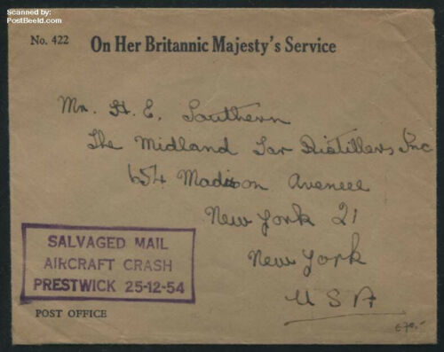 It was 03:30 on Christmas Day 1954 in driving rain when a British Overseas Airways Corporation (BOAC) Boeing 377 Stratocruiser aircraft crashed on landing at Prestwick Airport, Scotland. Twenty-eight of the thirty-six on board were killed. A horrible accident and a terrible loss of life. However some items survived the disaster, including mail and a consignment of diamonds!