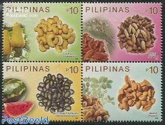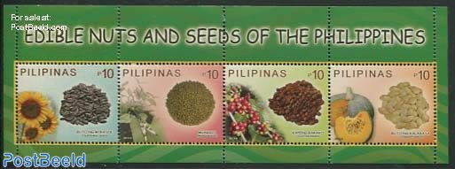 Certain seeds and nuts are an important part of the food chain and the Philippines produced stamps in 2013 depicting some of the most popular consumed in one way or another by humans and animals alike. Above, from the left can be seen sunflower seeds, mung beans, coffee beans and squash seeds.