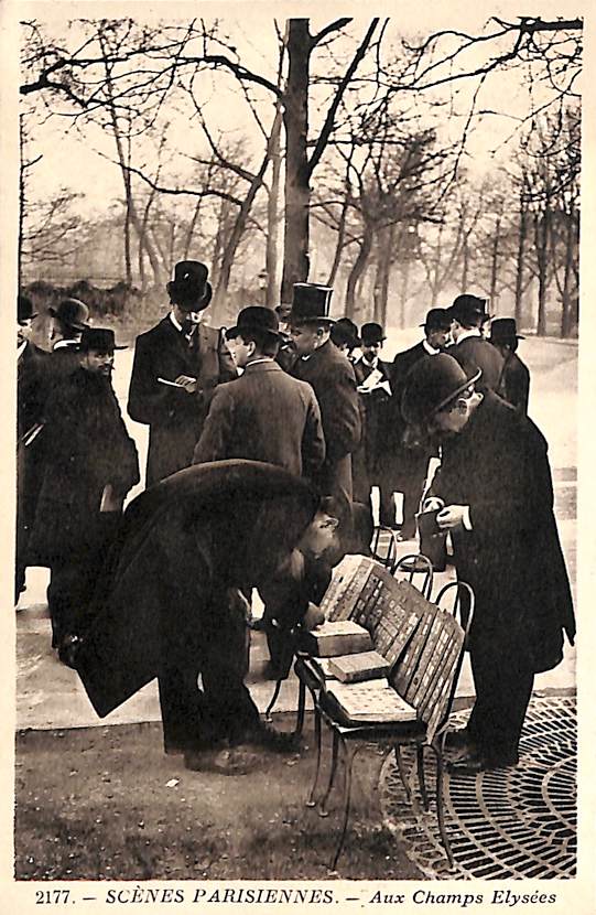 The first postcards with photographs date from the early 20th Century. Trading was primarily done by sellers standing or placing their items on chairs. And it certainly wasn’t exclusively men!