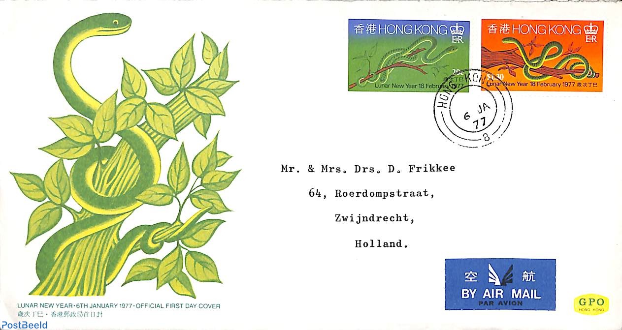 The last items are from Hong Kong 1977, then still under British rule. The stamps depict Wood Snakes, also seen on the First Day Cover below.