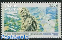 The knapsack parachute was created in Russia in 1912 by a Russian engineer, Gleb Kotelnikov. This stamp was issued to celebrate his invention’s centenary.