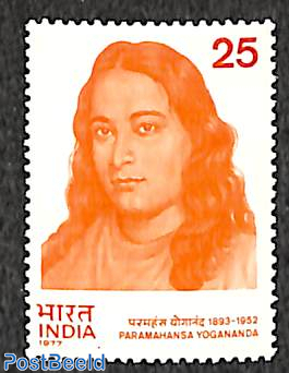 The first stamp in this article has a portrait of Paramahansa Yogananda (born 1893–died 1952). He was an Indian Hindu monk, yogi and guru. He was sent by his lineage to America in 1920 to spread the teachings of yoga to the West, to prove the unity between Eastern and Western religions and to preach a balance between Western material growth and Indian spirituality.